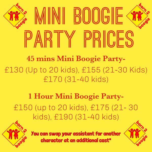 Mini Boogie Parties can be 45 or 60 minutes long and can include: